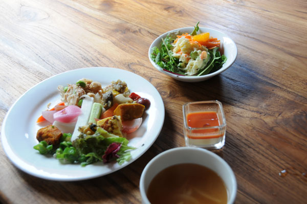 ステーキかハンバーグをチョイス。あとは約50種もあるハーブブッフェから好きなだけ。